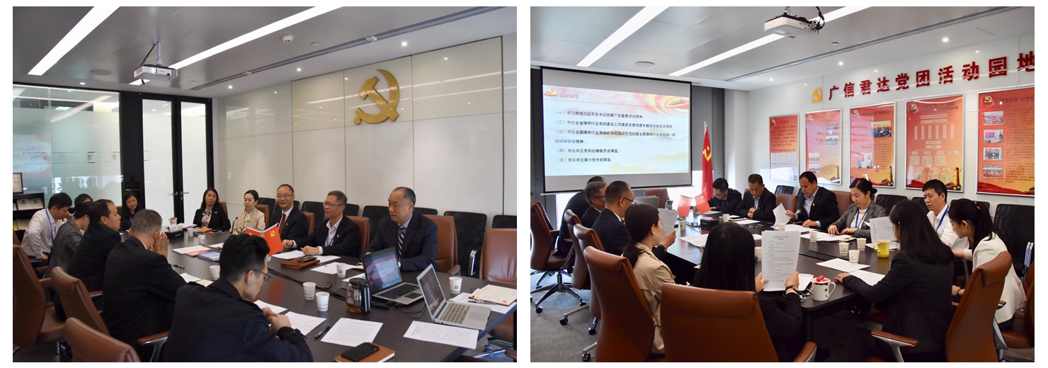广信君达党委书记章勋、党委副书记邓传远、纪律委员黄永东、组织委员兼团支部书记黄福轩、宣传委员谢捷、统战委员何雁飞、青年委员兼党委办主任李晓月出席会议,第四党支部书记赵俊峰及各党支部部分委员列席会议。党委书记章勋主持会议。