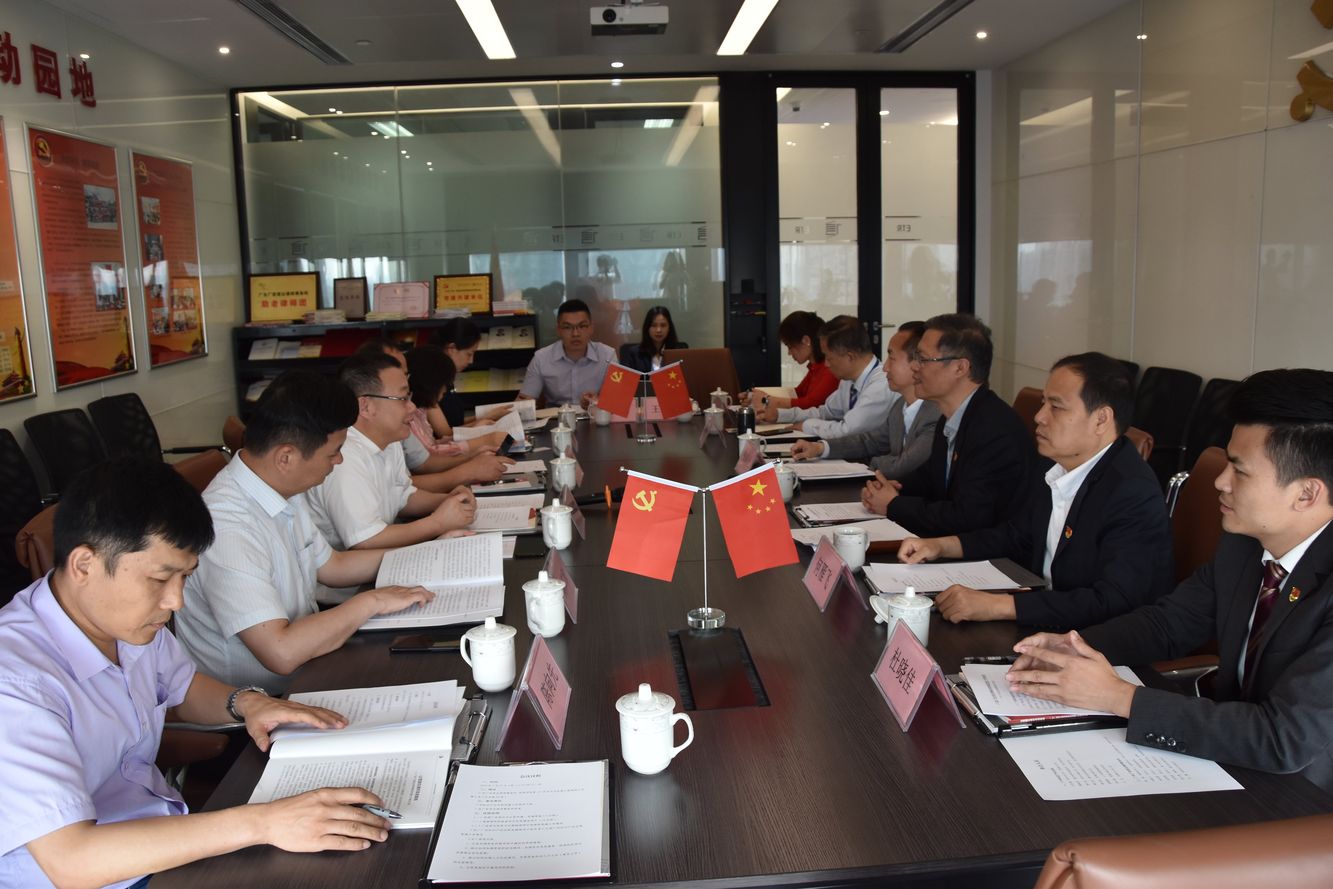 2018年5月15日,广州知识产权法院综合办主任、党建办主任王仕第,著作权审判庭庭长、党支部书记谭海华,综合办副主任、党支部书记陈仁欣等一行8人莅临广东广信君达律师事务所开展党建交流活动。广信君达合伙人会议主席王晓华,党委书记、合伙人会议联席主席章勋,党委统战委员何雁飞,党委业务委员、监事张成勇,第四党支部书记、管理委员会成员赵俊峰,第一党支部书记杜晓佳,第五党支部书记陈小英等热情接待来宾。