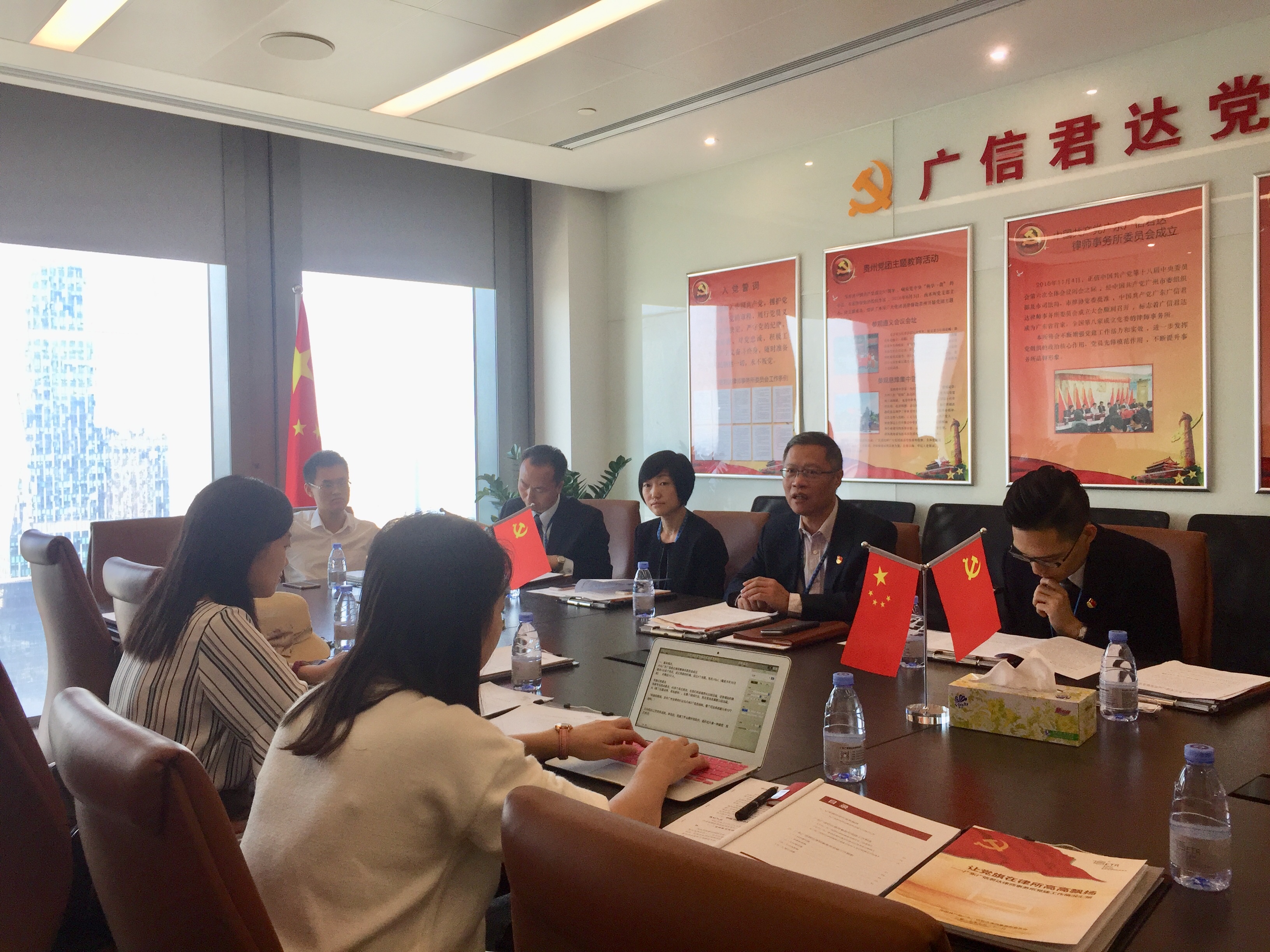 时值中共广东广信君达律师事务所委员会成立一周年之际,新华社广东分社时政新闻部主任毛一竹、时政新闻部记者周颖莅临本所采访调研非公组织党建工作情况。广信君达党委书记章勋律师、党委业务委员张成勇律师、党委组织委员兼团支部书记黄福轩律师、党员代表慕亚平律师,广东省政协常委、广信君达合伙人会议主席、民盟盟员王晓华律师,管理委员会负责人苏东海律师,广州市新的社会阶层人士联谊会白云分会行业人才专委会副主任、白云区政协委员、民建会员王井云律师,广州市新联会白云分会理事、农工党党员、执行副总监蒋利等陪同采访调研。