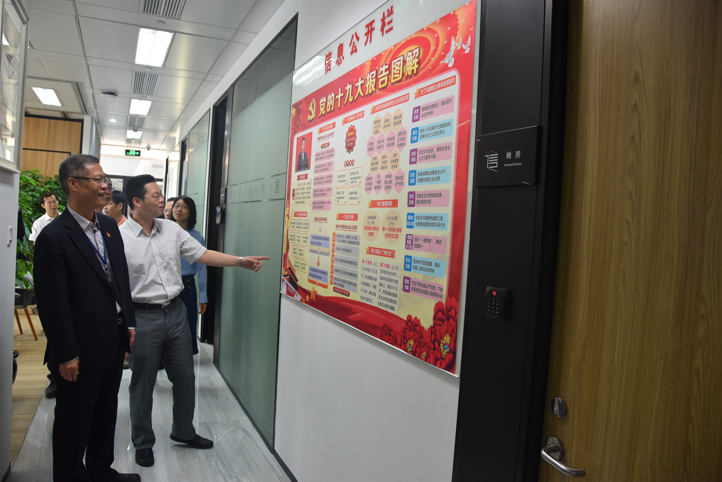 在章勋律师的陪同介绍下,沈庚总经济师、黄仁龙调研员一行参观了广信君达办公环境及党建阵地,并观看了广信君达形象宣传片及党建工作总结视频。
