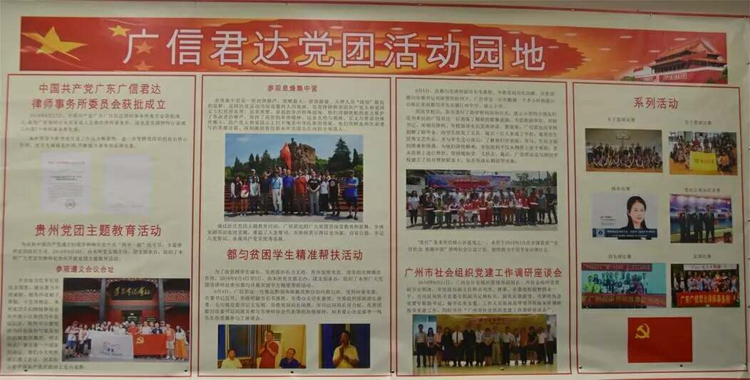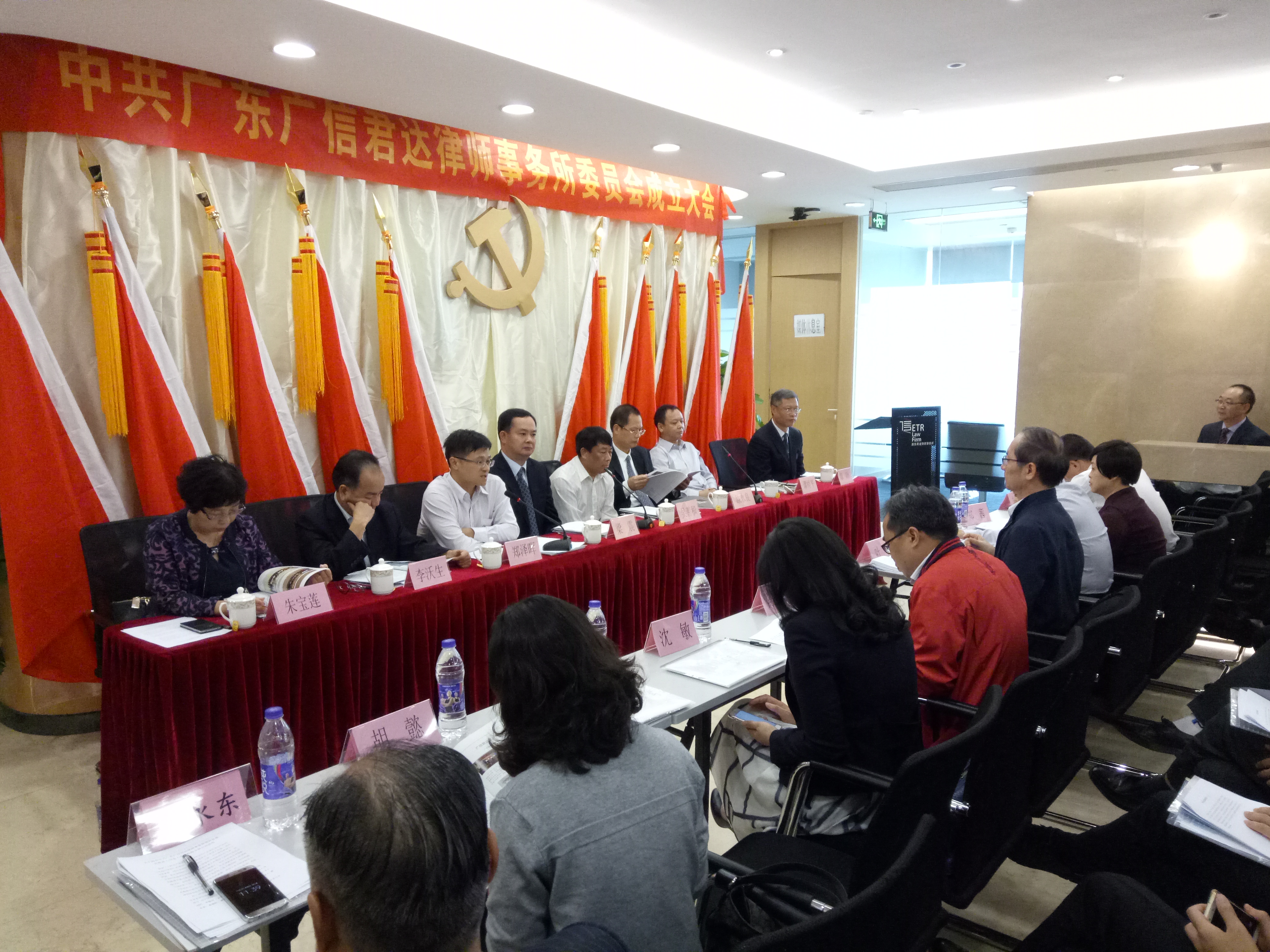 2016年11月4日,正值中国共产党第十八届中央委员会第六次全体会议闭会之际,经中国共产党广州市委组织部及市司法局、市律协党委批准,中国共产党广东广信君达律师事务所委员会成立大会顺利召开,标志着广信君达成为广东省首家、全国第八家成立党委的律师事务所。