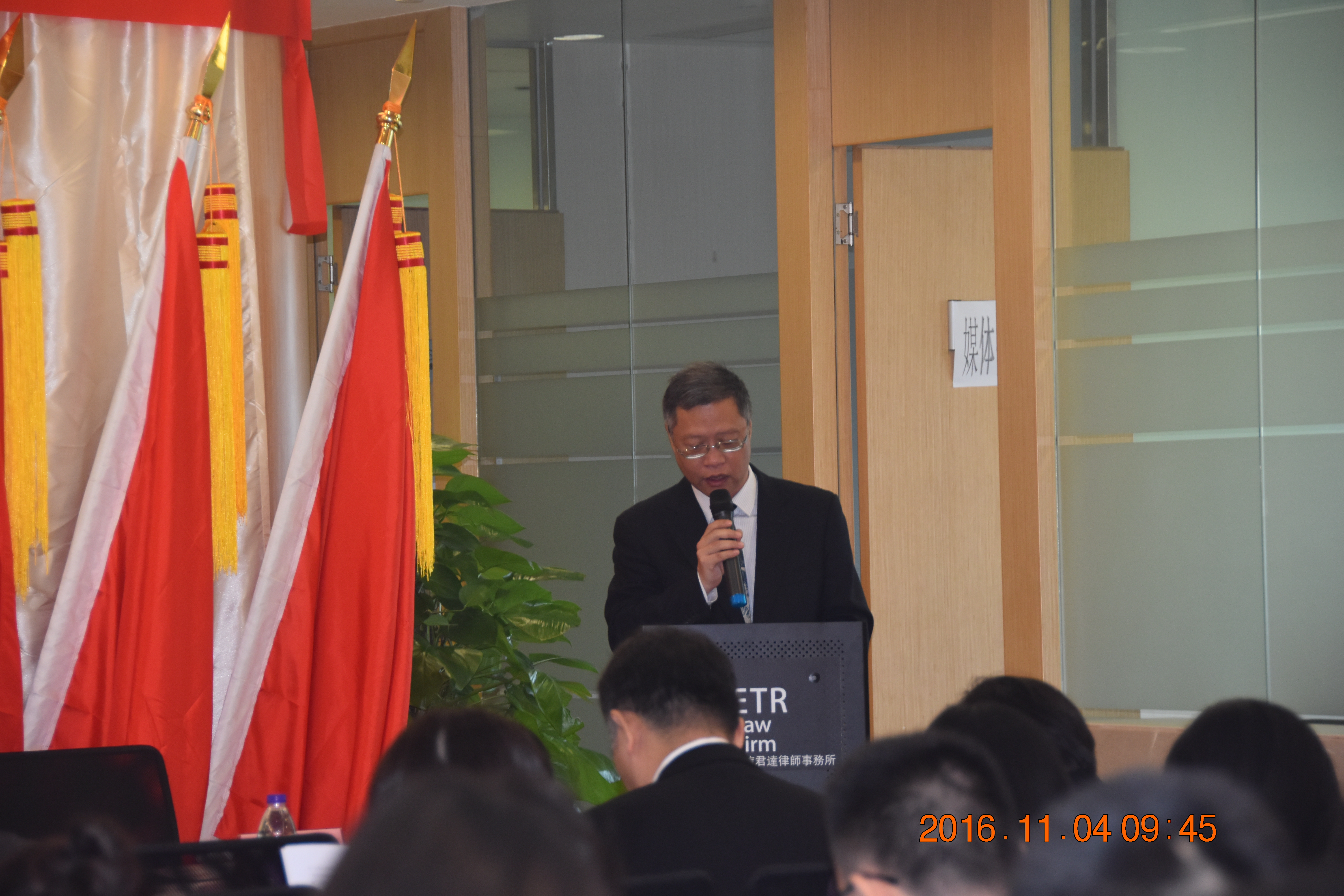 吴善积书记代表广州市司法局党委和市司法局致辞。吴书记指出,广信君达成立党委,是当前学习贯彻党的十八届六中全会精神之际的一件十分值得纪念、庆贺的大事,是我市“两新组织”党建工作和律师事业上水平的又一标志性成果,市司法局党委对广信君达律所党委接下来的工作展开寄予厚望。同时,吴书记对广信君达党委的工作开展提了三点要求:一是加强学习、提高修养,把学习作为党委和全体党员的政治责任和精神追求,用党的最新理论成果武装头脑、指导实践,提高党委“把握方向、驾驭全局”的能力;二是强化纪律、勇于担当,全面从严管党、治党,是党的十八届六中全会的精神要求,党委必须进一步树立“四个意识”,完善律师队伍管理;三是发扬民主、落实监督,从党支部升格为党委,服务人民的宗旨不变,必须从思想建党、制度建党的双重视角,建立健全党内民主监督体系。