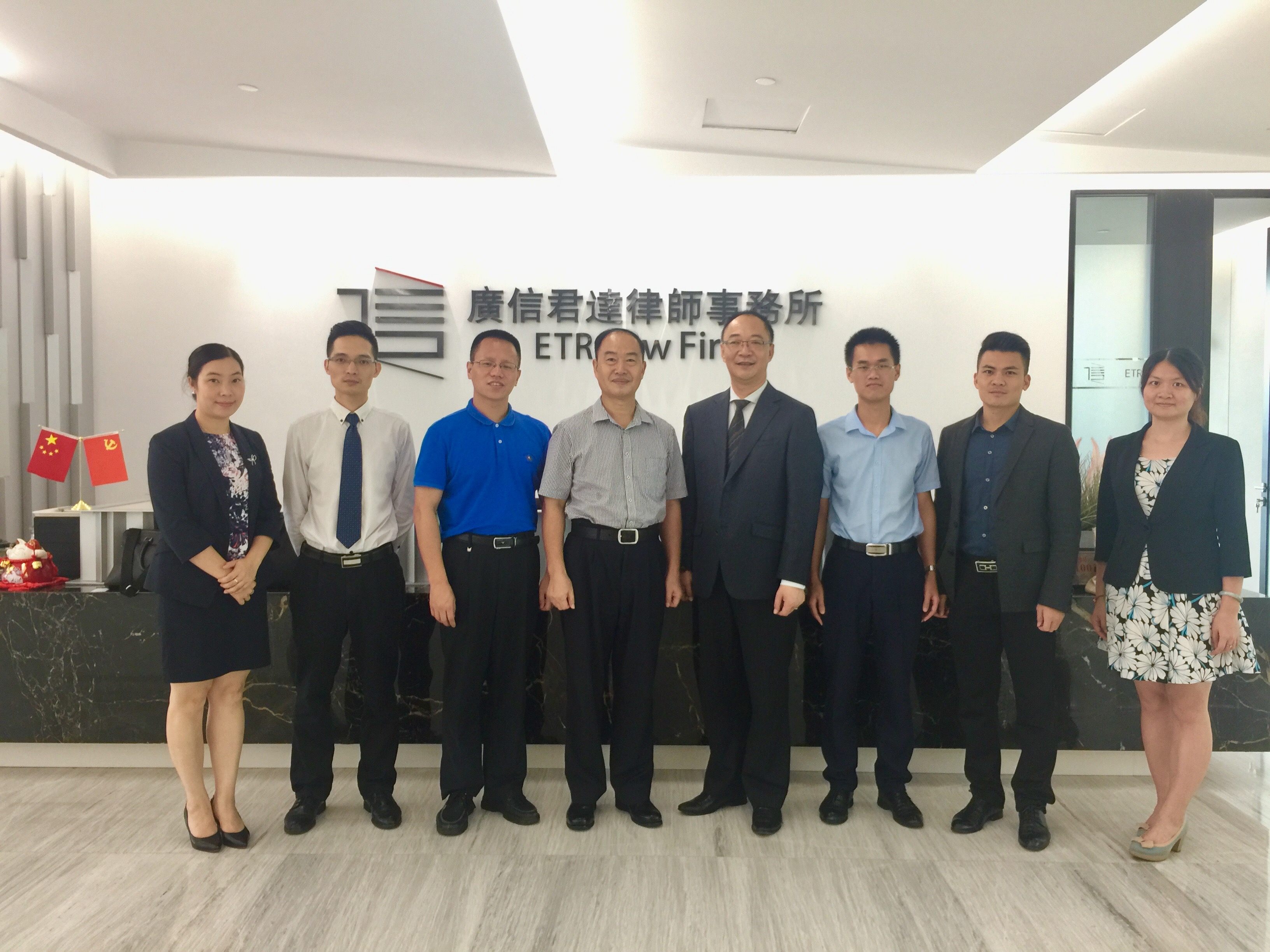 2017年7月4日下午,广东省司法厅政治部组织教育处处长张刚、广东省律师协会副秘书长史璞松、广州市律协党团办何颖嘉一行三人莅临广信君达检查指导工作,受到广信君达党委副书记邓传远律师、党委委员兼团支部书记黄福轩律师、第一党支部书记杜晓佳律师、第一党支部副书记张雪芳律师、行政副总监蒋利等的热情接待。