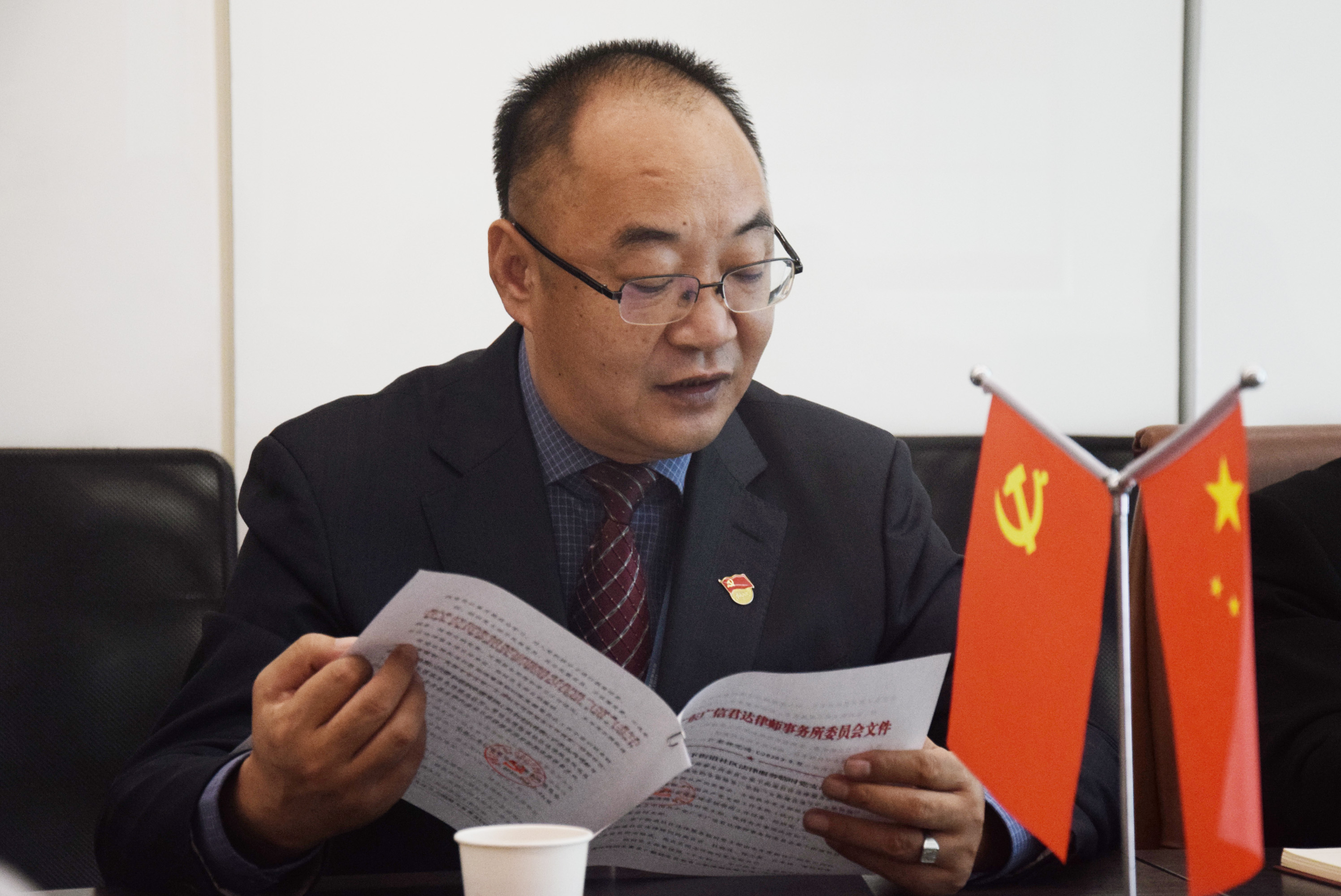 2020年8月21日下午,广信君达党委在党团活动室举行社区法律服务临时党支部成立仪式。广信君达党委书记章勋、党委副书记邓传远、党委委员张成勇,各党支部书记、社区法律服务临时党支部党员、村(社区)法律顾问党员律师等参加会议。