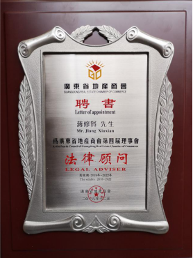 本次获聘为广东省地产商会第四届理事会法律顾问,体现了广东省地产商会对蒋修贤律师在该法律领域专业性的认可与肯定。蒋修贤律师表示,将以严谨的执业态度和专业精神,结合丰富的房地产法律事务执业经验,为广东省地产商会提供专业、优质的法律服务,全面保障广东省地产商会法律事务合法高效的顺利推进。