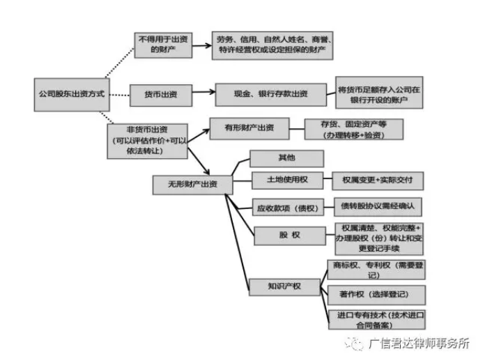 [3]股东可以用货币出资,也可以用实物、知识产权、土地使用权等可以用货币估价并可以依法转让的非货币财产作价出资;但是,法律、行政法规规定不得作为出资的财产除外。