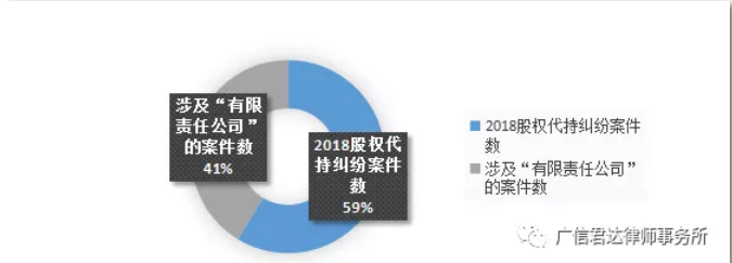 通过上图数据不难看出,在股权代持纠纷中涉及有限责任公司的案件占了4成,说明有限责任公司的股权代持普遍存在风险,同时也从侧面反映投资人选择代持公司时更加偏向于中小型的企业。