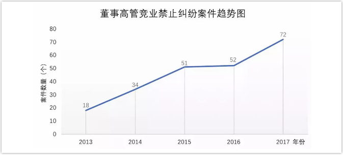 从以上统计可以看出,竞业禁止纠纷案件属于忠实义务纠纷案件中最为重要的纠纷事由,并且在过去五年中,呈现出明显的上升趋势。这反映出在公司治理领域,竞业禁止纠纷多发,公司的所有者必须重视对董事、高管同业竞争风险的防范。