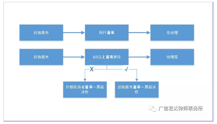 在引入外部投资者时,适当赋予其董事提名资格能够合理配置资源,提升决策实效,但不能逾越1/2的红线。创始股东控制了董事会,就意味着控制了公司经营层,对公司的控制权牢牢在握。尤其需要注意,对于外部投资者提名的董事,需要审慎赋予其一票否决权。一旦该提名董事有权一票否决董事会决议,尽管创始股东拥有多数董事席位,其控制权也已经名存实亡。