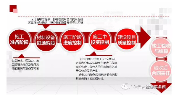 我们可以看到图二在建设工程的物质生产阶段中,从准备阶段,到材料设备进场阶段,再到施工与质量控制阶段,以及竣工验收阶段,即使涉及三方当事人,合同相对性原则仍然得到严格遵守。多数情况下,建设项目投资控制阶段亦遵守了合同相对性原则。在合同责任承担方面,合同相对性原则有所突破,仍有一部分得到遵守。例如,总包人可以基于《示范合同》中的约定,向发包人行使工程价款优先受偿权。这里的优先受偿权,仍属于合同相对性原则的遵循,因为不论从约定条款看,还是从法律规定看,分包人并无此项权利。[1]