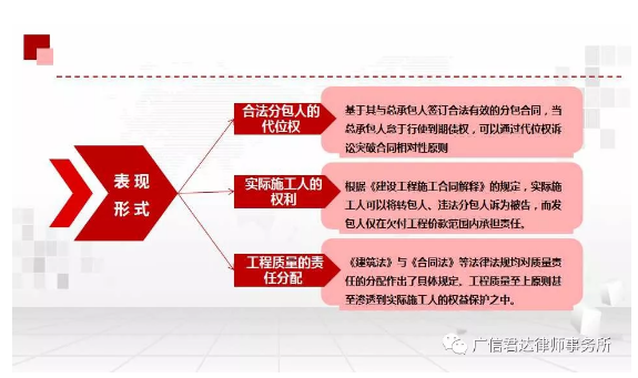 建设工程合同领域合同相对性例外的情形主要表现为如图三所示。