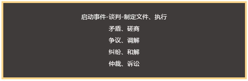 (一)依一般商事行为及律师业务视角,从启动商事行为的谈判自决到不得不完全托付给“高人”的处理及决断,或者说,从非讼至诉讼,其递进过程大致是:
