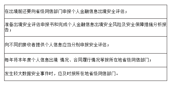 不难看出,个人金融信息跨境传输要符合《网络安全法》及其配套的相关法规规章和规范性文件建构的个人信息保护制度,目前依照个人信息出境要求进行管理。