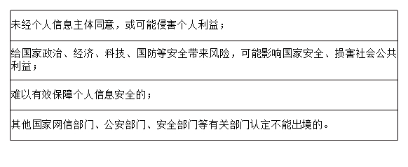 同时,金融业机构不得在以下情形进行个人金融信息的跨境传输: