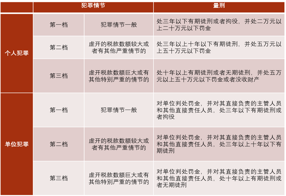 虚开专票罪的犯罪情节及量刑如下图所示: