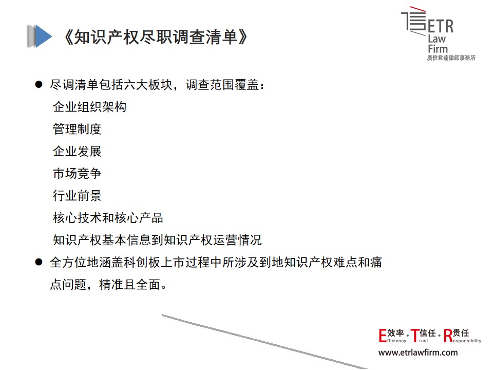 2. 走访后,团队需立即根据走访结果和企业的反馈,向企业出具一份《知识产权尽职调查清单》,为企业进行深度的体检。