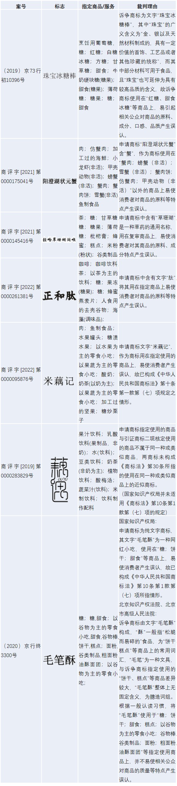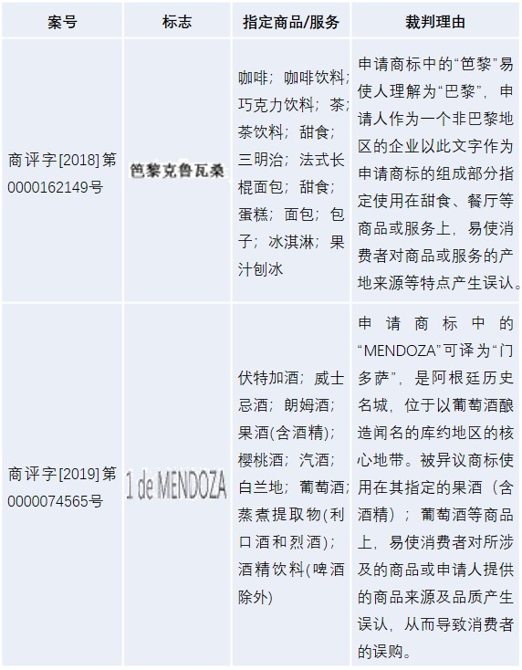 相对而言,餐饮服务上的商标注册申请因“欺骗性”条款而被驳回的情况相对较少,但部分情况下仍存在具有构成“欺骗性”条款规定的情形。