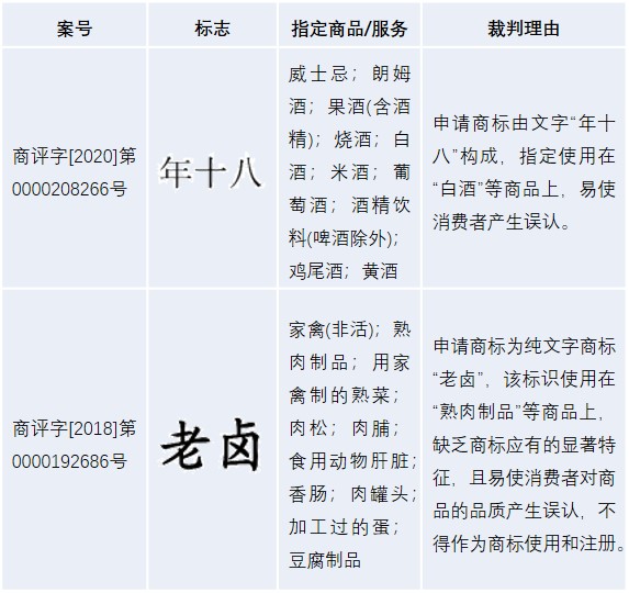 例如,对于酒类商品而言,尤其需要注意涉及年份、酿造方法的词汇而引发的“欺骗性”条款风险;对于肉类食品而言,尤其需要注意涉及制作工艺(例如:腌、卤等)等词汇而引发的“欺骗性”条款风险。