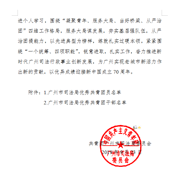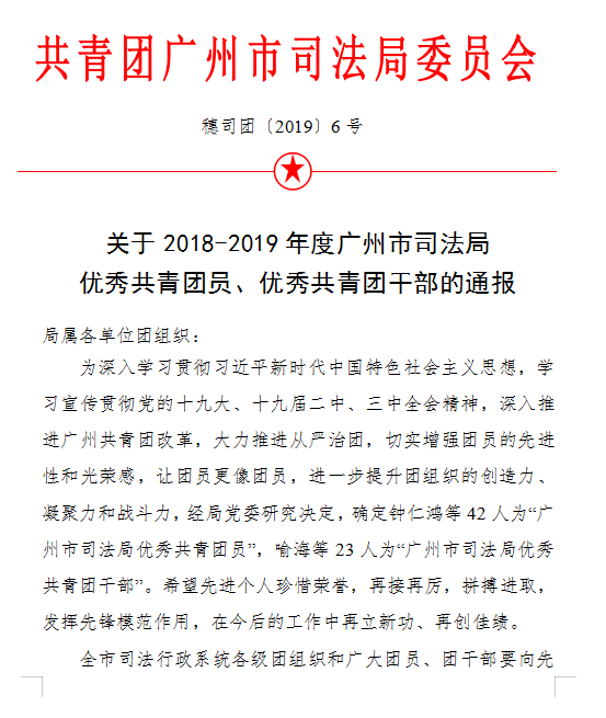 《关于2018-2019年度广州市司法局优秀共青团员、优秀共青团干部的通报》